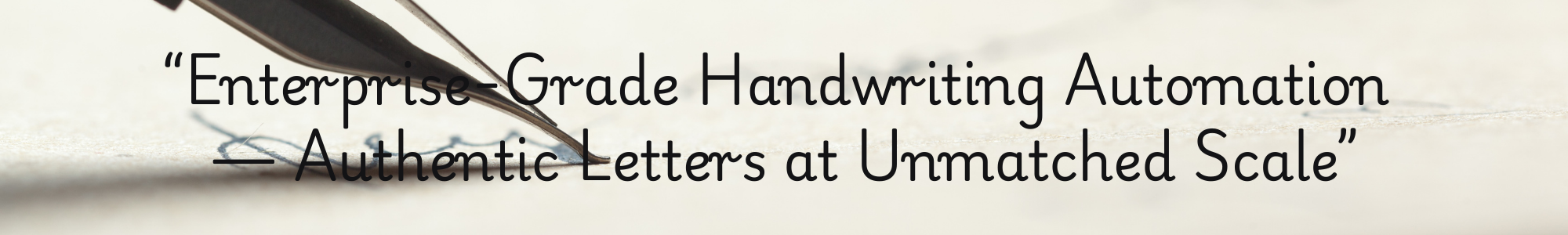 Enterprise marketing teams, large print houses, fulfillment centers, direct mail companies, corporate mailrooms, hospitality groups, and high-volume commercial handwriting service providers.